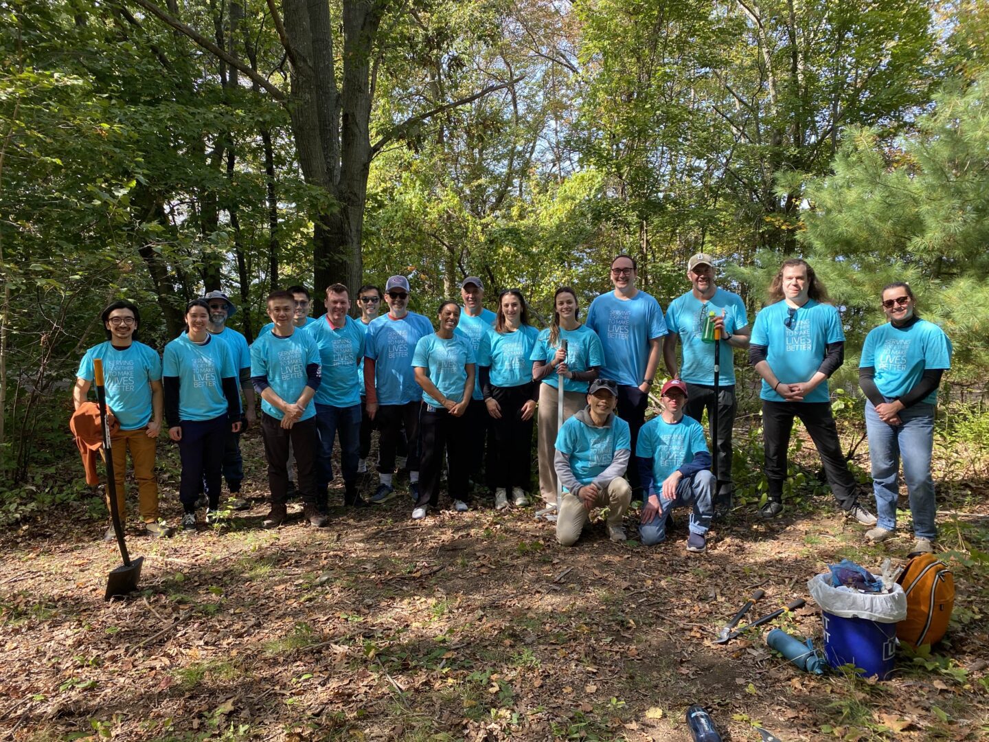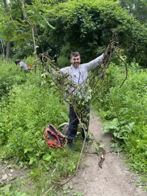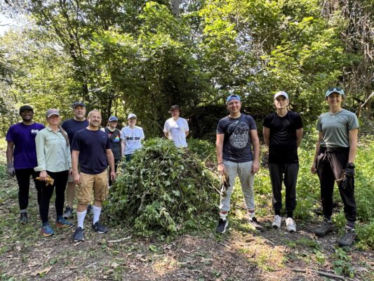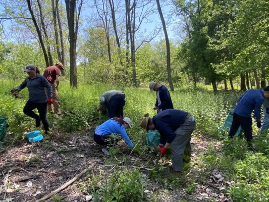 Two years ago, we started a corporate volunteer program in which businesses support their volunteer day with a corporate engagement donation. The donation covers the cost of supplies, planning, and execution of the volunteer event while the volunteers remove invasive plants, pick up trash, and maintain trails. This year, we worked with 11 corporate partners and 142 volunteers to remove Garlic mustard, Common buckthorn, Asiatic bittersweet, Japanese knotweed, Black swallowwort, and Porcelain berry. The groups removed 19 large bags of invasives and created nine large miles of invasive plants slated for removal.