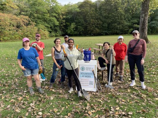 Friends of the Fells offered 49 open volunteer days to remove invasive plants, fix culverts, repair trails, and pick up trash. That’s 107 hours of programming offered for volunteers to help maintain and care for the Fells.